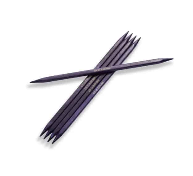Cubics revolutionerande fyrkantiga strumpstickor i trä med spetsiga tippar och stabilt grepp gör att de lämpar sig bra för dig som lätt får ont i händerna och handlederna när du stickar.
