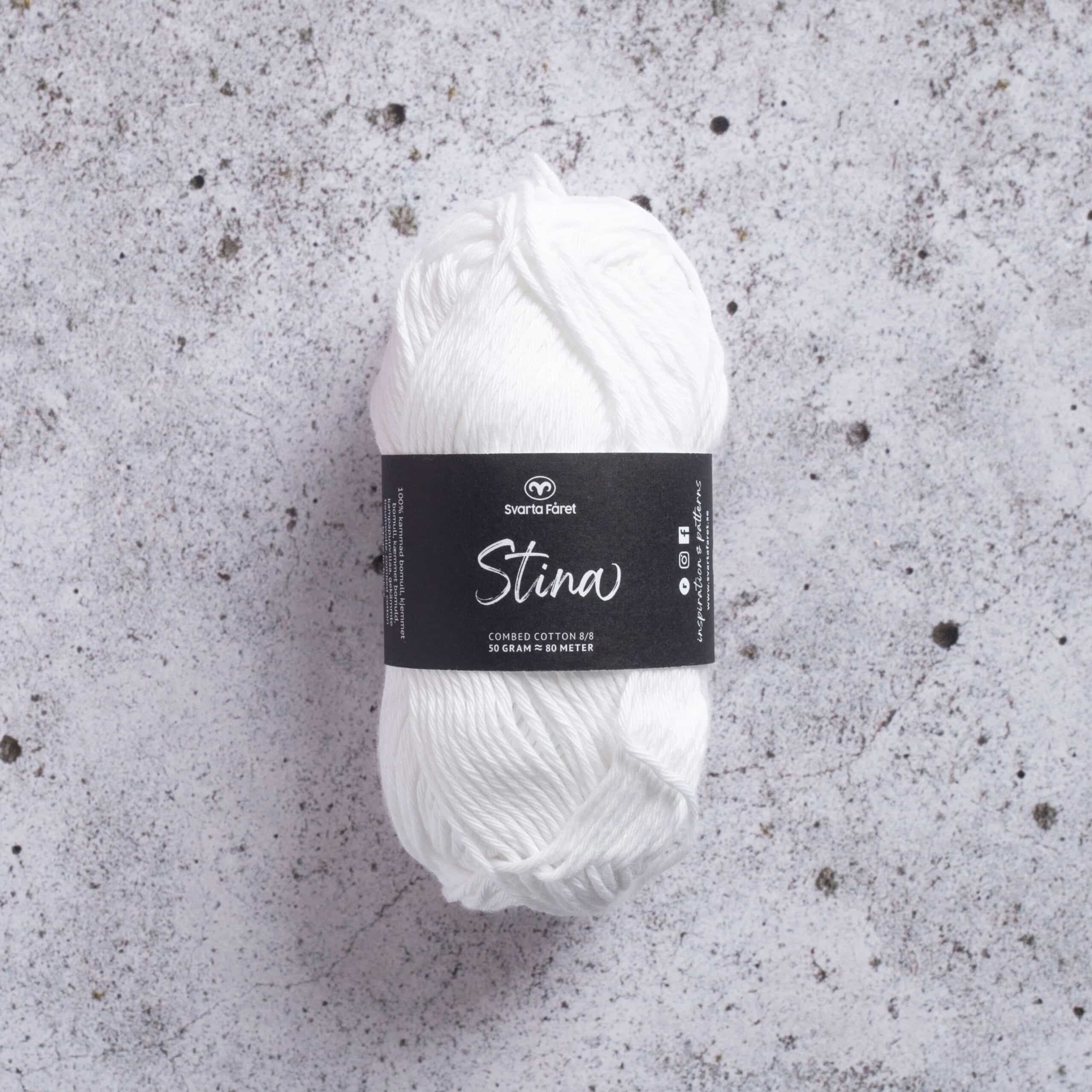 Stina från Svarta Fåret är ett mjukt, lite tjockare 8/8 bomullsgarn av kammad bomull. Detta omtyckta garn passar perfekt när du vill sticka eller virka plagg och accessoarer som både är mjuka och stora. Stina passar också perfekt till pyssel och interiör, som grytlappar och kuddar.